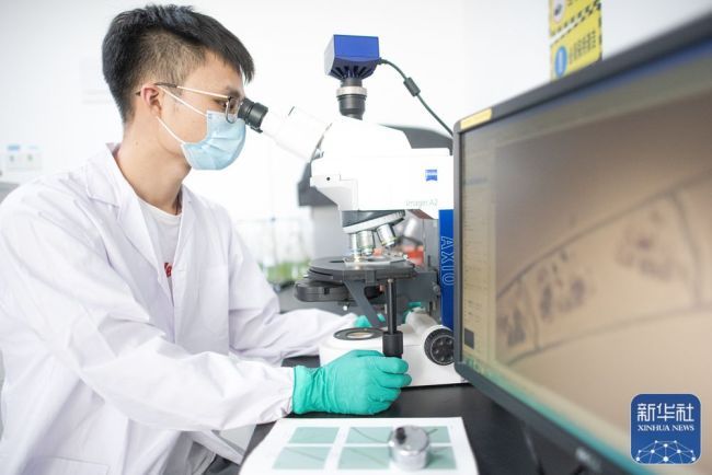 8月3日,在长江科学院实验室,科研人员对长江源区采集的藻类样本进行鉴定。