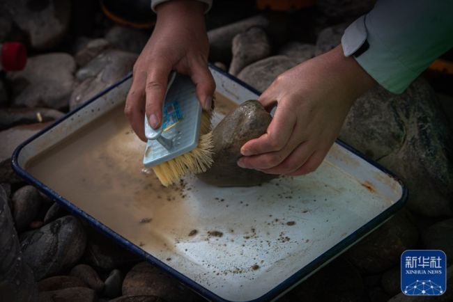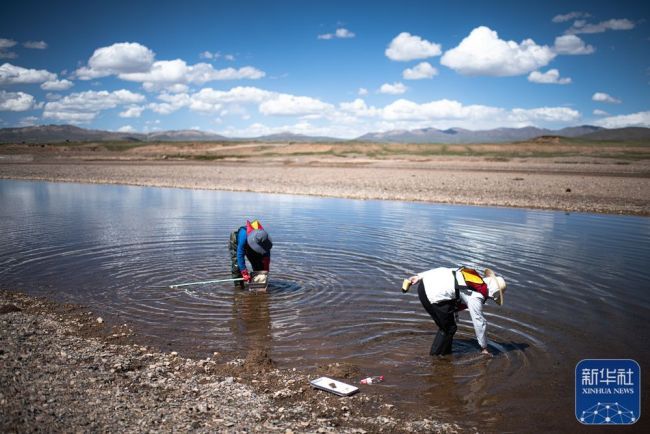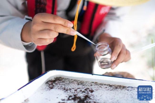 2022江源综合科考中,长江源区的水生态和水环境状况是科考队员们的观测重点。每到一处采样点,来自长江科学院的科考队员就会取瓶拖网采集浮游生物标本,或用毛刷从附着基质上刷取着生藻类,或从堆在解剖盘中的河床底质里挑拣底栖动物,探秘高原水生态的“微观世界”。