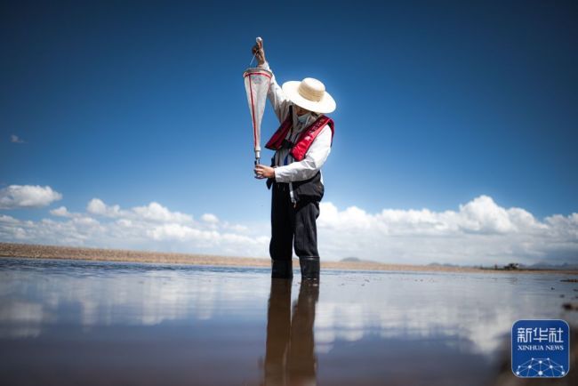 7月25日,长江科学院科考队员李鲁丹在采集浮游动物样本。